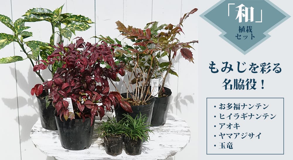 | 庭植え、鉢植え、寄せ植え、盆栽、シンボルツリー、街路樹・学校・公園 |