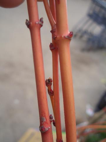 美峰はイロハモミジの園芸品種で、1年目の枝はオレンジ色に染まり、2年目の枝は黄色~クリーム色になります。マヨネーズカラーの枝を持つモミジ。秋からは黄色い黄葉を見せ、オレンジ色の枝とのコントラストは絶妙。樹勢が強く、よく生長します。他では見かけない1本です。