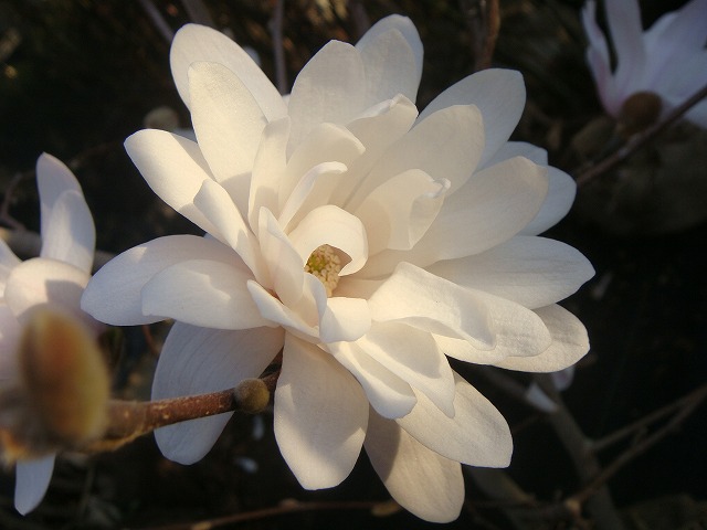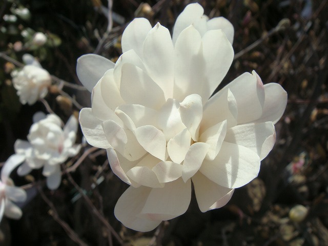 3~4月頃に白色の、花径6~11cm程の花を咲かせます。花弁は9~30枚程ついており、1枚1枚が細長くヒラヒラしています。