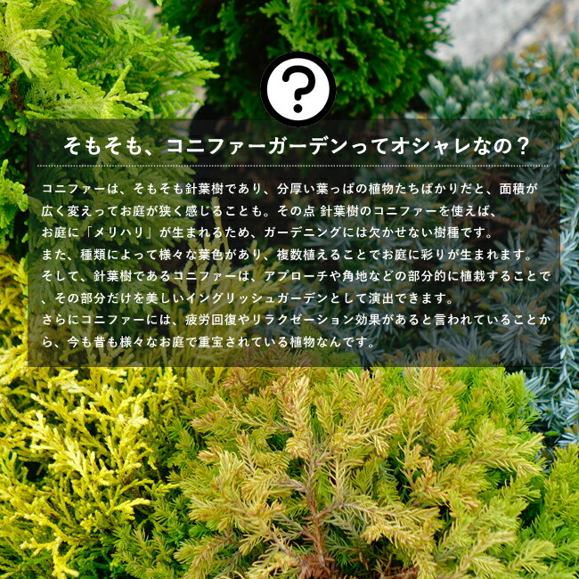 【プロが選ぶコニファー6点セット】難しいコニファー選ぶもこれで安心!店長が厳選したコニファー6点なら、どんなお庭にもマッチします!