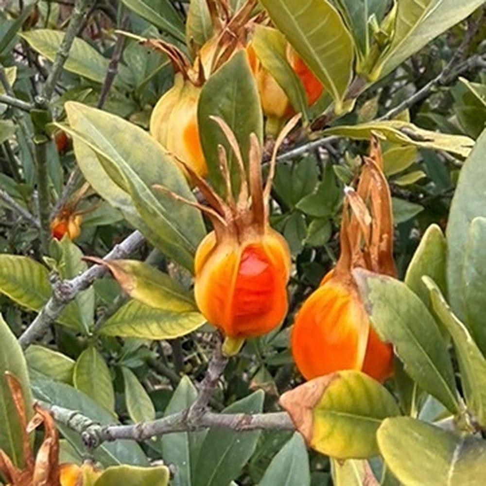 濃厚な香りを放つ香りの女王です。初夏に強い芳香の白い花が楽しめます。花の大きさは5~8cmくらいで、開花が進むとうっすらと黄色くなります。花が終わると果実がつき、実が楽しめるのは一重のクチナシで、近年人気があります。