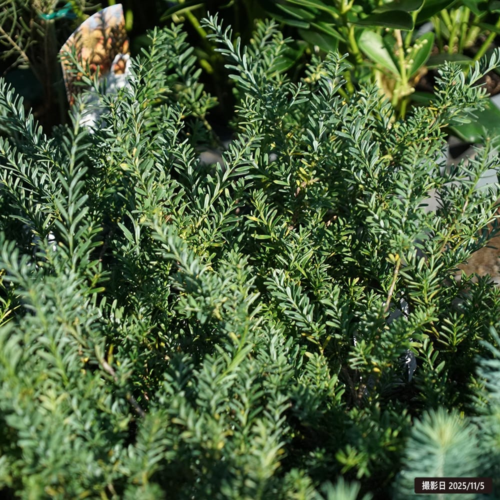「ブルージェム」は常緑樹であるマキの仲間で、比較的新しい園芸品種です。マットな質感のブルーがかった細い葉が繊細な印象。寒さ暑さに強く、常緑で育て易く、冬のお庭でも素敵な葉を楽しめます。