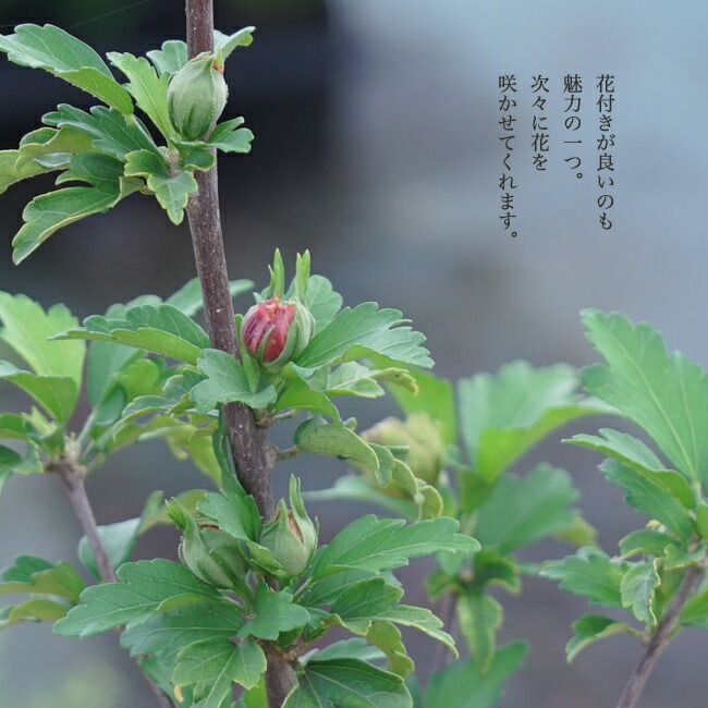 ムクゲの花は一日花といい、朝花が開いて夜にしぼむ性質です。日当たりだと次から次へ蕾が上がってきます。日当たりの良い場所で育てるとよいです。