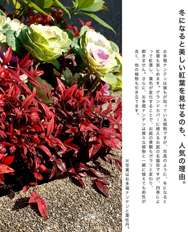 苗木部のお多福南天は基本的にポット苗ですが、ボリュームが他のとは全然違います。5株ほどアプローチに平行に植えるだけでとってもオシャレ!