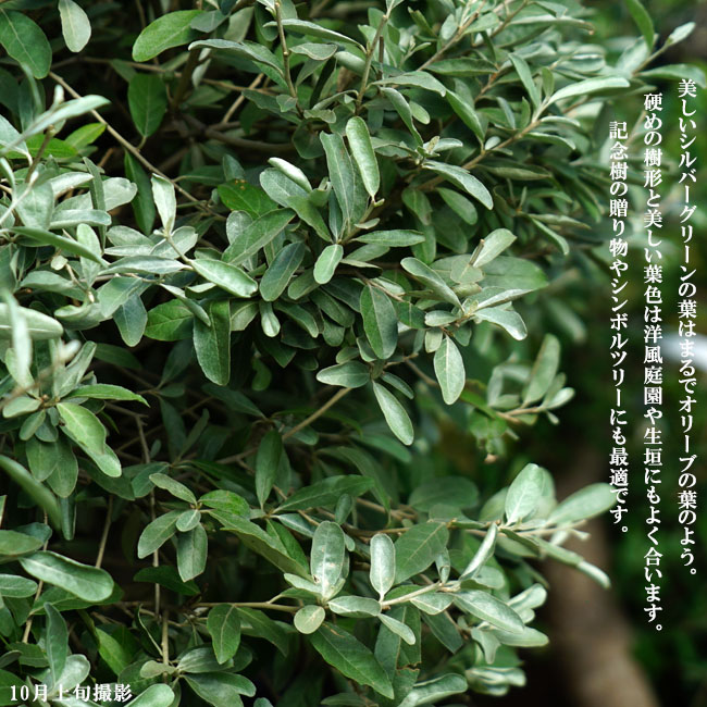 オリーブに似た葉ですが、グミの一種なので耐寒性、耐暑性に優れており、全国で育ちます。乾燥にも潮風にも強いです。オリーブの代用にも利用されています。剪定にも強く、寄せ植えやトピアリー、スタンダード仕立て、シンボルツリーや鉢植え、目隠しや生垣などなど、用途は多いです。