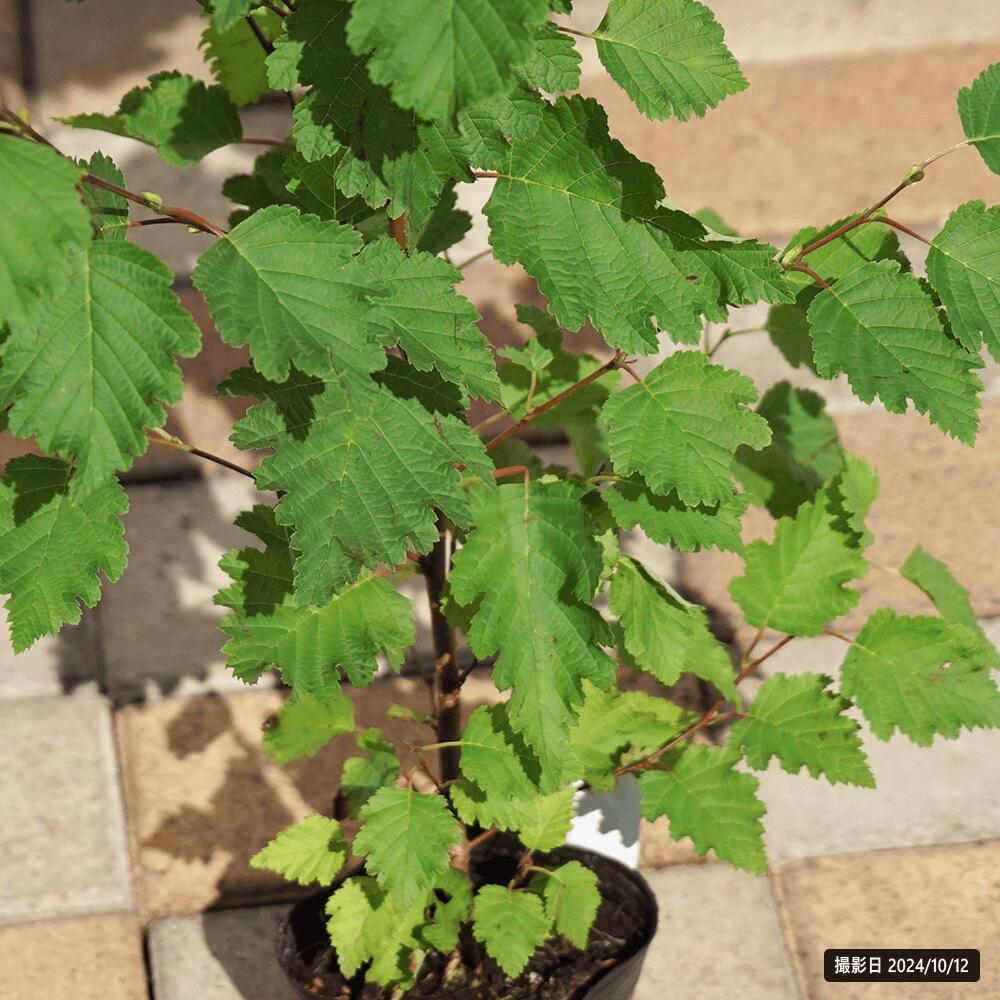 「ヤマハンノキ」は、湿地に自生するハンノキの中でも山地で見られるため、その名が付きました。生育旺盛で大木になりやすく、大きいもので幹が直径80cmくらいに成長することも。樹皮は紫を帯びた黒褐色で樹齢を重ねるごとに灰色の皮目が入り、味のある風合いに成長します。枯れた後もずっと枝先に残るため、一年中実が付いている感じです。実際に熟すのは10月くらい。韓国では緑化植物として様々な場所に植林されています。