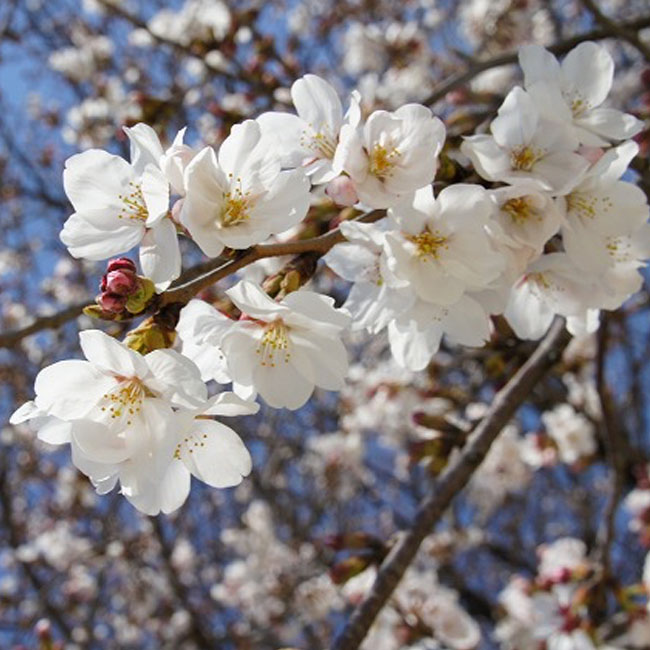 江戸時代末期に「吉野桜」として江戸染井村(現在の東京都豊島区)の植木屋が売り出した品種です。それまで一重咲きの桜は、山桜などの野生味のある桜でしたが、ピンク色の花を枝いっぱいにつける華やかなソメイヨシノは一大ブームを巻き起こし、昭和の初めには日本中に広がりました。