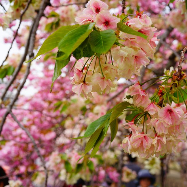 咲き進むと花弁に紅色が乗ります。大阪造幣局のサクラの通り抜けで撮影
