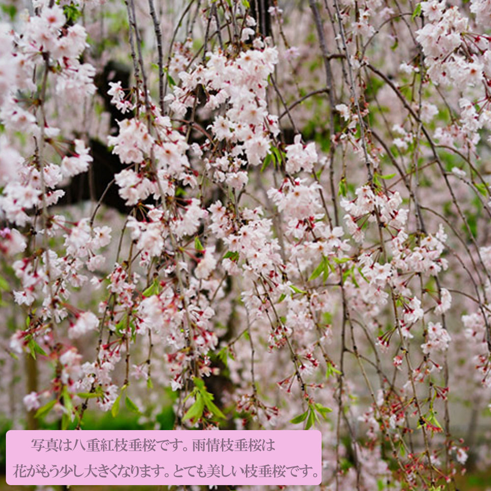 雨情枝垂れ(ウジョウシダレ)は八重咲きで淡紅色の花で、中輪の花が咲くしだれ桜です。江戸彼岸桜の栽培品種で、東北地方でも震災後に植樹しているとても美しい枝垂れ桜です。花弁数は15~20枚程度で、4月中旬~下旬以降に開花。八重紅枝垂れとよく似ていますが、ウジョウシダレのほうが花がやや大きいです。