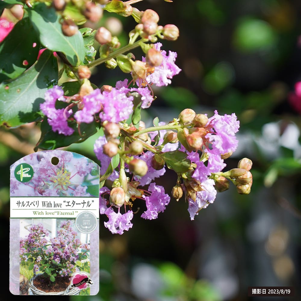 「ウィズラブ」シリーズはヨーロッパで登場した新しいサルスベリです。開花期が長くコンパクトな樹形なので、寄せ植えや鉢植えでも楽しめます。耐寒性・耐暑性に優れ育てやすい点も魅力です。夏から秋まで繰り返し花を付けるうえ、一才性もあることから樹が小さいうちから開花に期待できます。