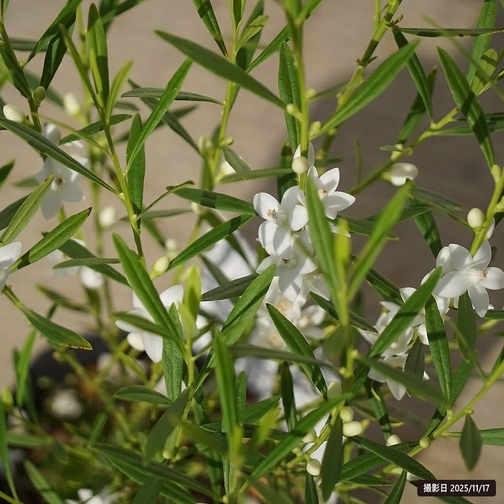 サザンクロス春から秋までの長い期間、星形の花が株一面に開花し続けます。一つひとつの花も1週間程度日持ちします。ミカン科なのため葉を揉むとほんのり柑橘類の香りがしますよ♪