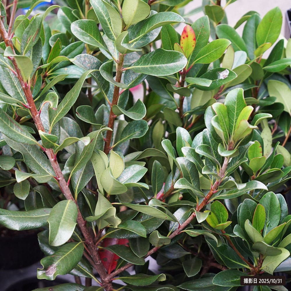 「マルバシャリンバイ」は葉が丸いシャリンバイです。丸い葉でとても可愛らしい立ち姿。枝が横に広がりやすくまとまりづらいので目隠しにはちょっと不向きです。福島県指定の天然記念物であり、大島紬の染料としても利用されています。(追記)以前はマルバシャリンバイはシャリンバイの変種とされていましたが、葉の形の変化は断続的で両者の区別がつけがたいため現在は同品種として扱われているようです。当店にある両者の葉もあまり違いを見受けられませんでした・・・。こちらのサイトでは生産者から聞いている方の名前で販売しております。