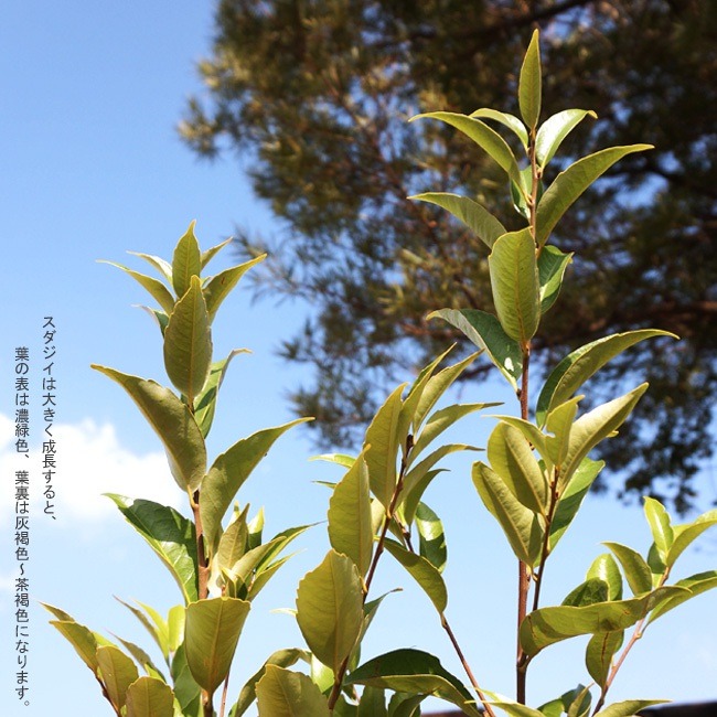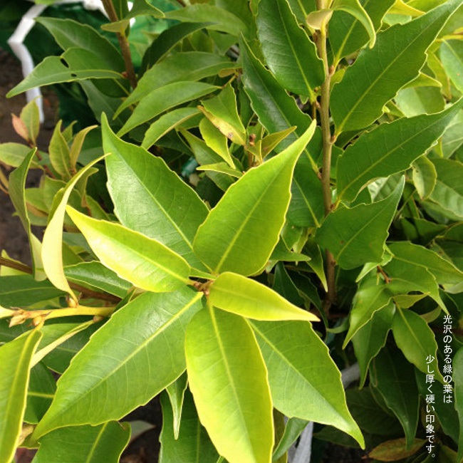 葉は楕円形で縁がギザギザしていますが、葉のギザギザが現れないこともあります。葉の表面は鮮やかな緑色、裏面は銀褐色と葉色が違うのも特徴的です。