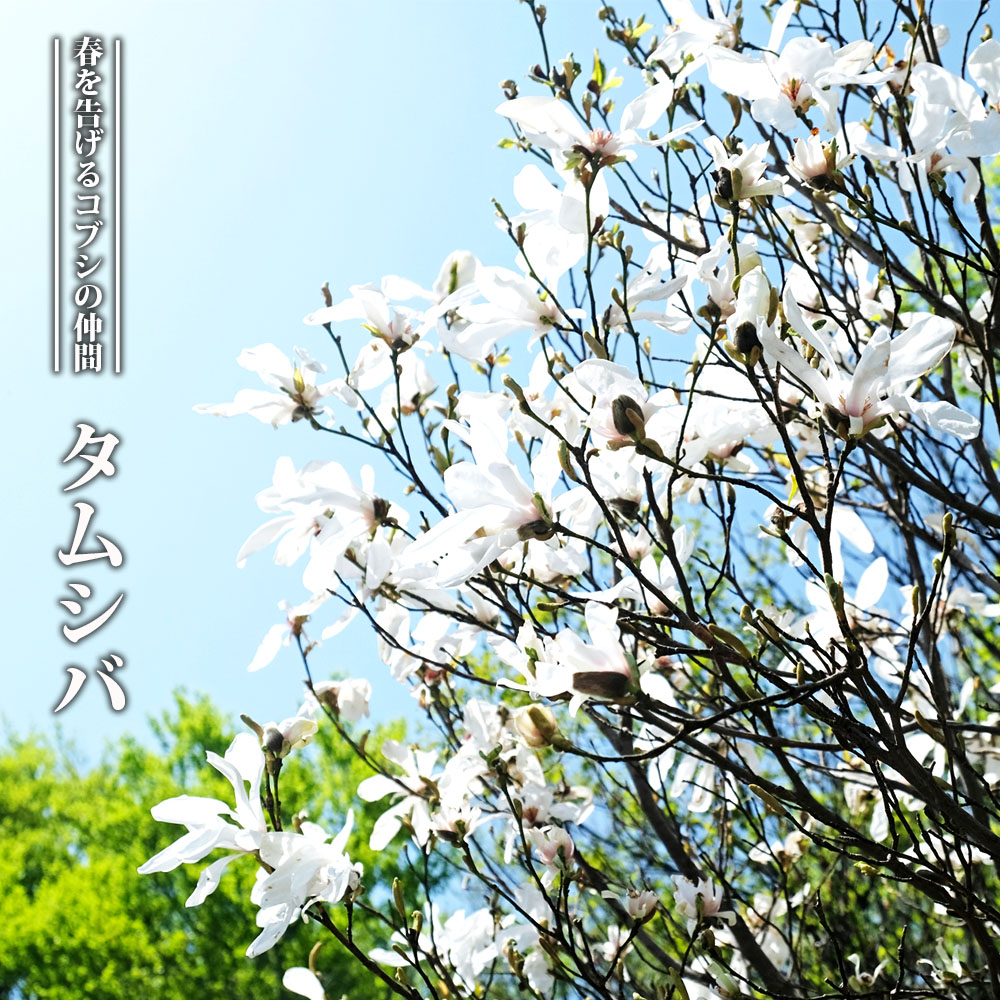 「タムシバ」は、早春にコブシに似た白い花を咲かせます。コブシの花より大きいものが多く、香りもより強いことが多いです。