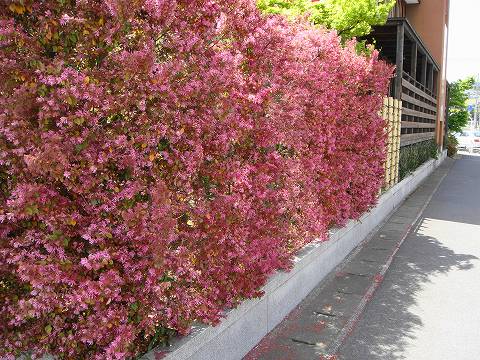 自由に伸ばした赤葉紅花トキワマンサク。1回の屋根を越える大きさになります。