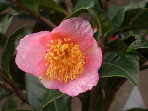 炉開きの葉はお茶の葉にそっくり。微弱ですが花にも茶の花に似た香りがあります。木の姿も、お茶の木に似ています。