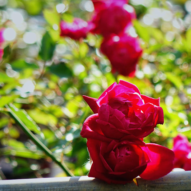 | 濃紅色・中輪咲き(7cm位)・一重、抱え咲き |
