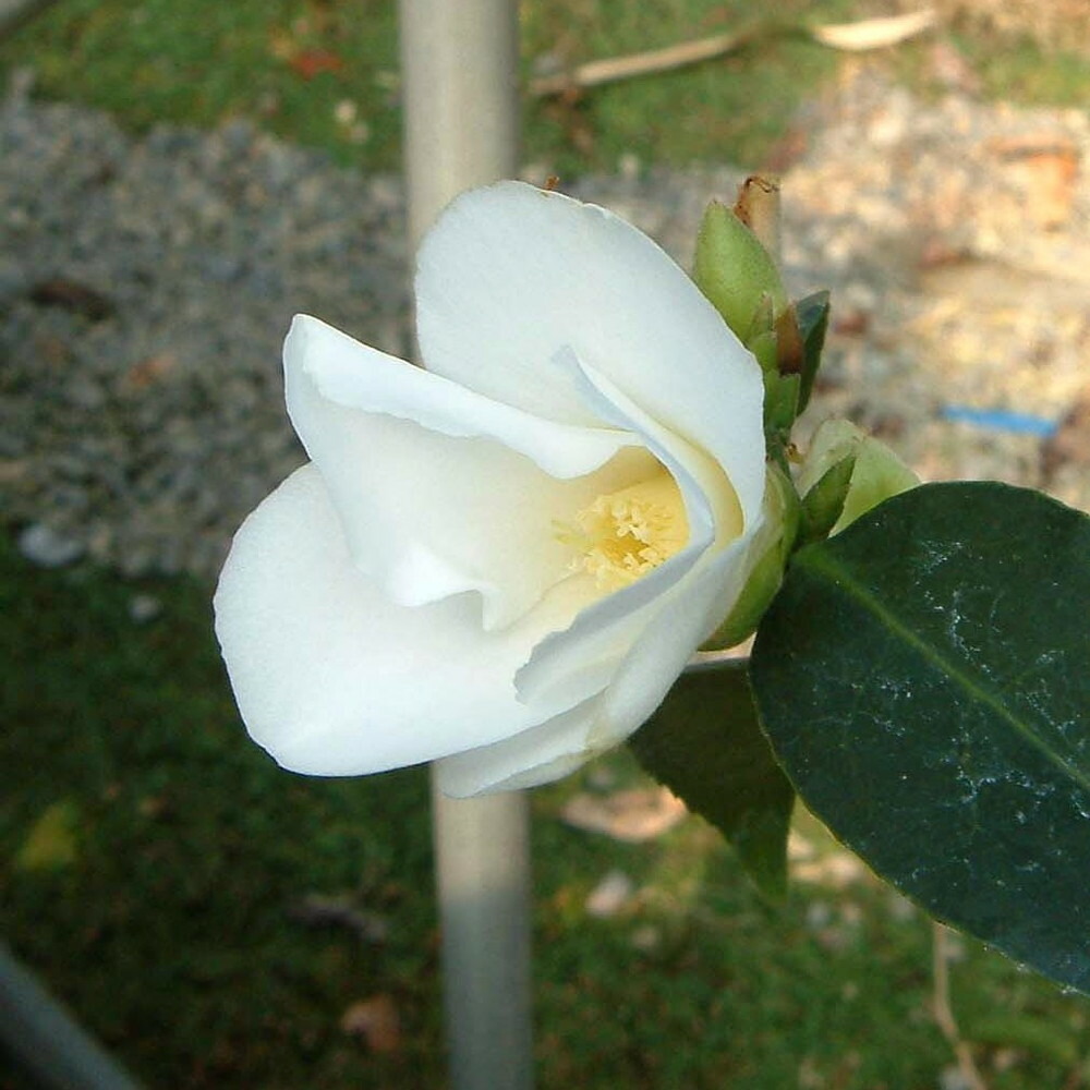 11月ごろから咲き始める早咲きの白い小さなツバキ。利休七選花のひとつで茶花によく利用されます。花付きが良く、冬の間も花を咲かせ続けてくれます。