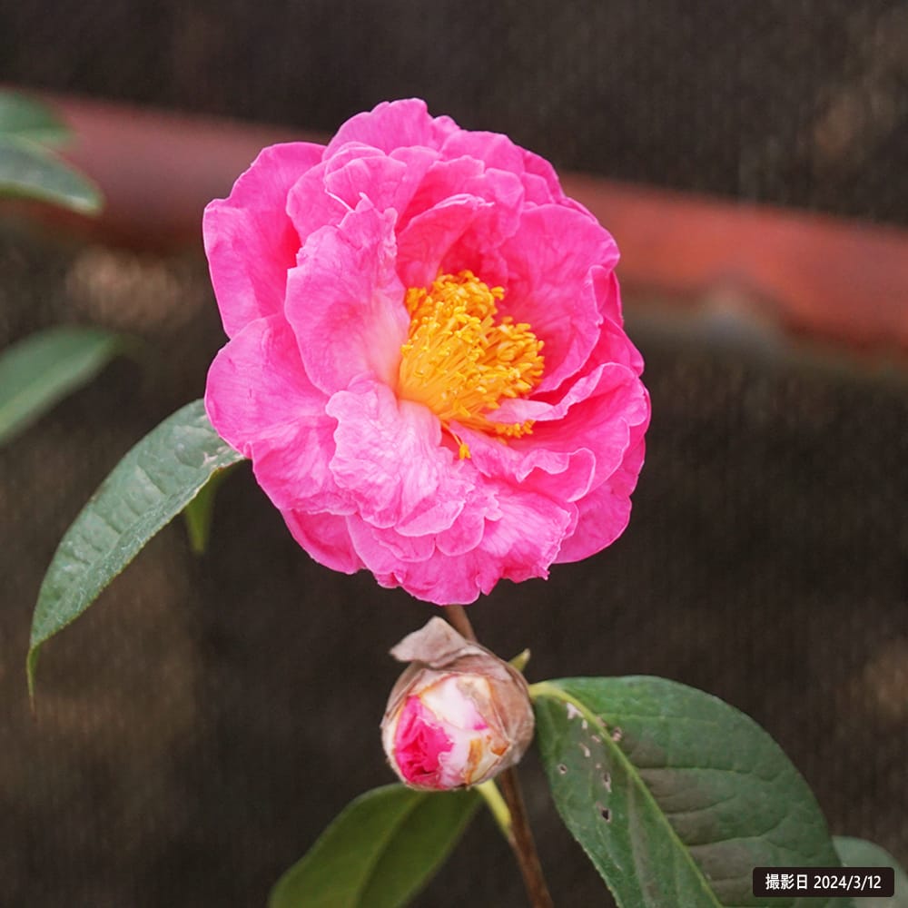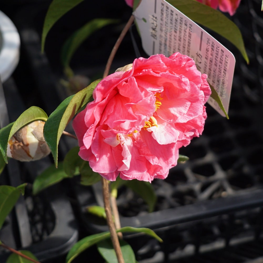 銀灰色の蕾や黄色の房状になった雄しべにグランサム椿の面影が残ります。蕾も4cmほどある大輪種で、牡丹のような巨大な花が楽しめます。