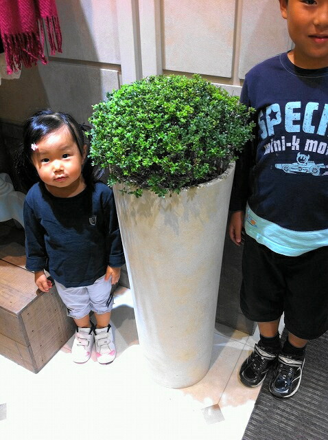 ショッピングモールに飾られたキンメツゲの玉仕立て