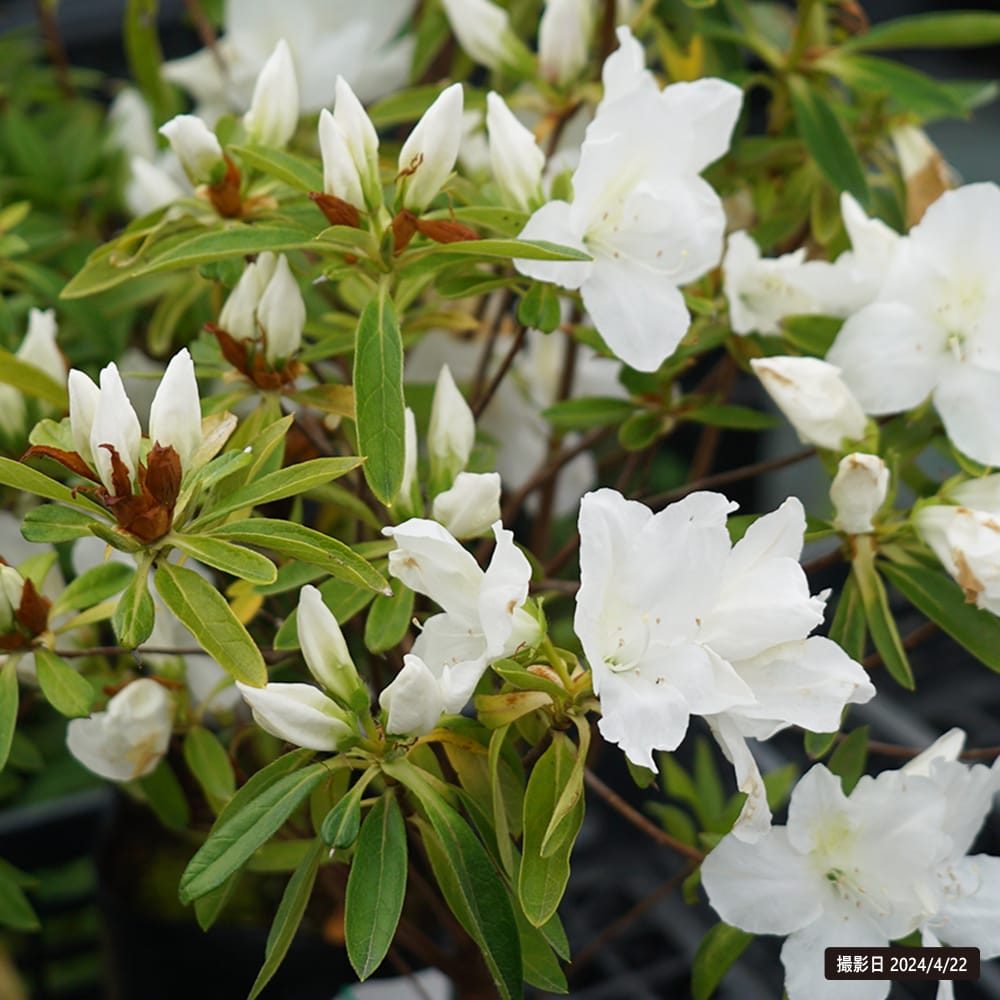平戸ツツジの白花です。花つきも良く、樹を覆い尽くさんばかりに花をつけます。