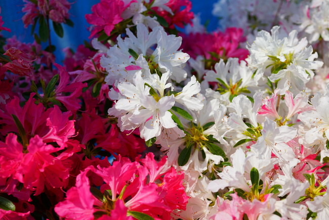 久留米ツツジは、江戸時代の天保年間に、久留米藩士の坂本元蔵という方が品種改良を始めたもので、サタツツジを中心に、キリシマツツジ、ヤマツツジなどを基に交配したものと言われています。