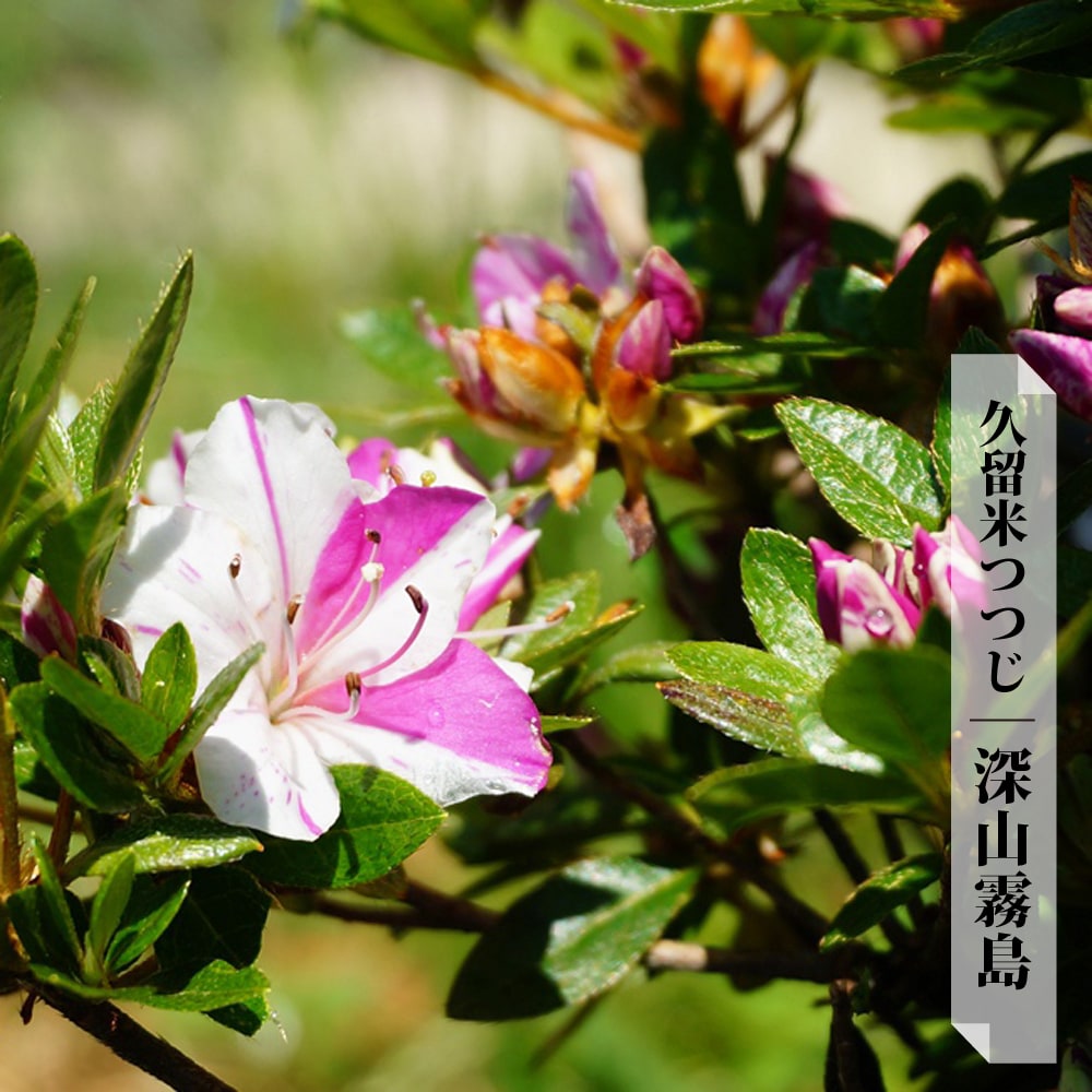 深山霧島は、久留米ツツジの一種で、枝先に2~3個ずつ小ぶりな花を咲かせます。花色は白地に紫紅色の絞りが入ります。通常のツツジに比べて小さい花を咲かせます。刈り込んで樹形を仕立てたり、生垣に用いたりと用途は多様です。花壇やアプローチ、鉢植えでも楽しんでいただけます。