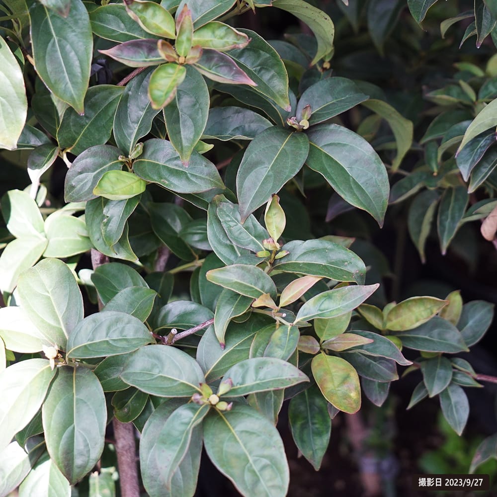 耐陰性が強く半日陰でも生育はしますが、日に当たらないと花実の付きが悪くなります。西日が当たると葉焼けは起こしますが株もとの乾燥にさえ気を付ければ枯れることはないので日向のほうがいいでしょう。もっとも、たくさん花が付く樹種なので、半日陰でもそれなりに花は付きます。