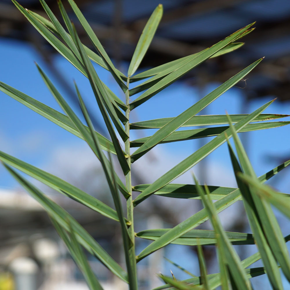 ナツメヤシは葉がとげとげしているので、刺さると痛いです。ご注意ください。