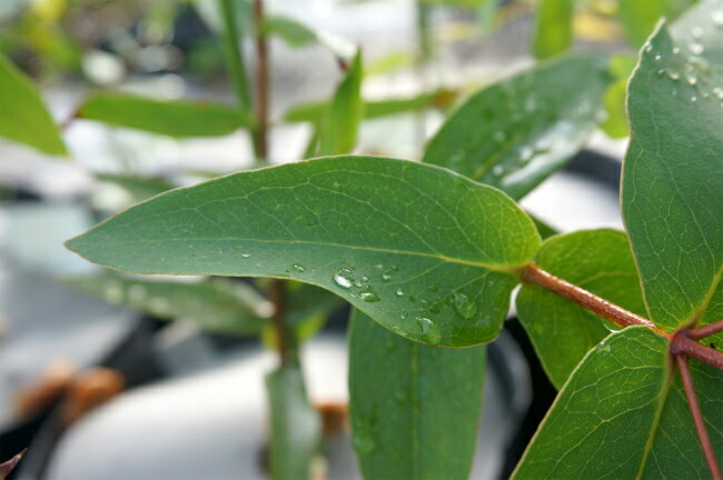 育て方 の特徴と育て方 niwa_yu-kari_16-02 2001年1月1日 2025年4月27日 高井尽 Facebook Twitter はてブ ●品種の特徴 強いペパーミントの香りがするユーカリ。爽やかなミントに似た香りが葉からふんわりと香ります。また、強い殺菌作用で空気を清浄に保つ力があるので、鉢植えで室内で管理していただいても良いかもしれません。夏には白い花を咲かせます。 ●商品の形状 苗木は6号ポットに仮植してあります。ポットも含め高さ0.5m前後くらいです。この商品は1梱包4本まで同梱可能です。 共有: クリックして X で共有 (新しいウィンドウで開きます) X Facebook で共有するにはクリックしてください (新しいウィンドウで開きます) Facebook いいね:いいね 読み込み中… 関連 Facebook Twitter はてブ