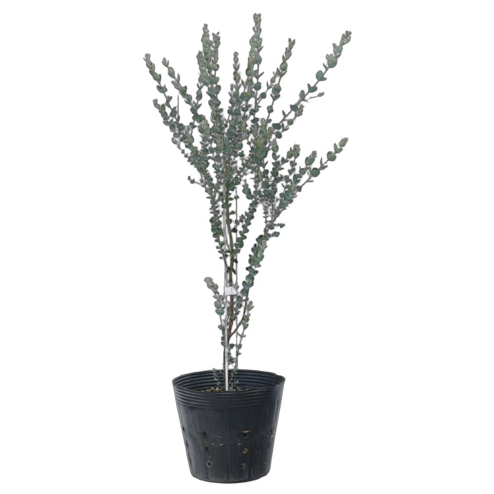 「月の入江」という意味を持つムーンラグーン。ユーカリには珍しいくらいの小さな葉です。スペード型の形をした白銀色の葉が美しい交雑種(ハイブリッド)で、とても人気があります。脇芽が出やすい性質なので、どんどん樹形にボリュームが付いてくるのも魅力的です。アメリカやオーストラリアでは代表的な品種らしく、柑橘系の香りが楽しめます。