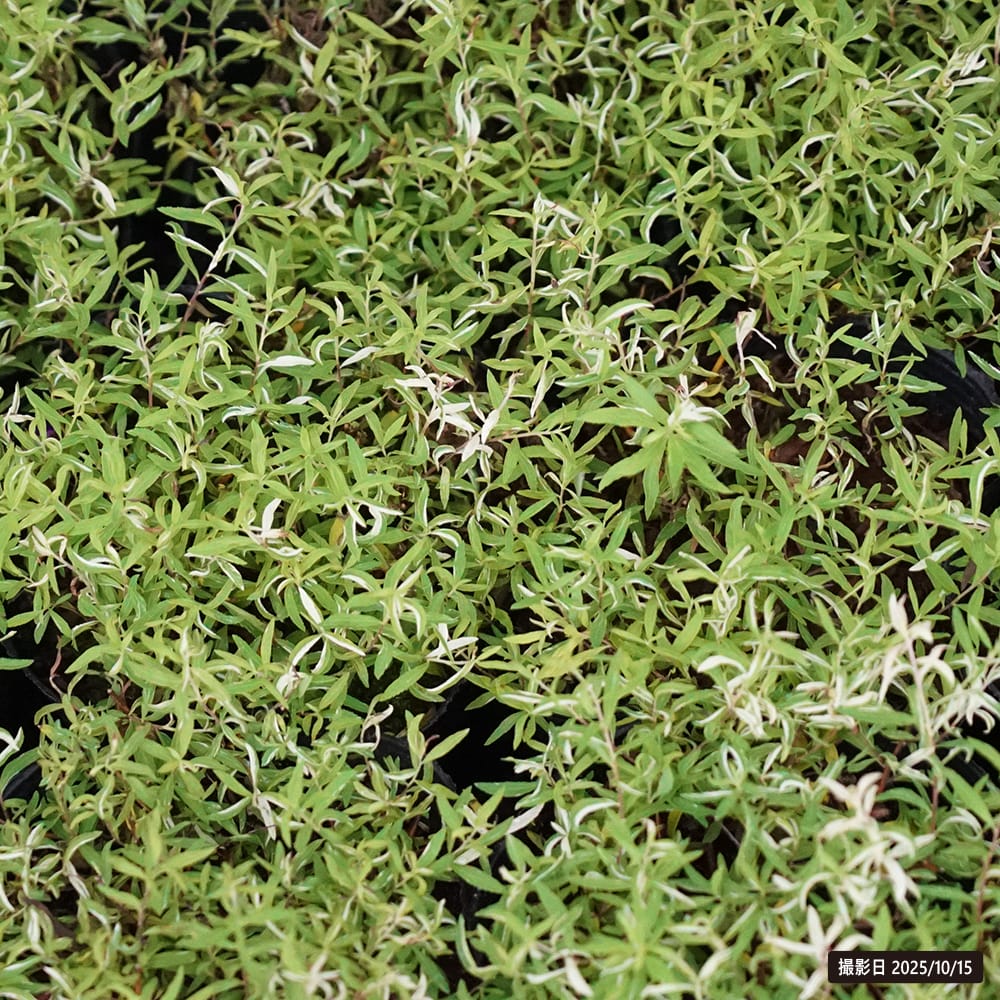 「斑入りユキヤナギ」は繊細な細葉に美しい白い斑が入るユキヤナギです。夏場は斑が抜けて緑になります。