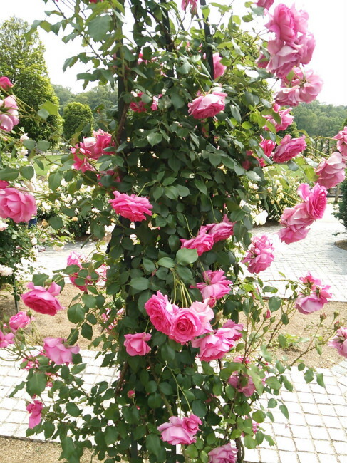 ラージフラワードクライマー(LCl)系統のバラはランブラー系のつるばらにハイブリッドティー系やフロリバンダ系を交配して作出されたつるバラです。ラージフラワードクライマー系統のつるバラは、短く切り詰めブッシュ樹形のように管理してもよく咲いてくれる性質があります。