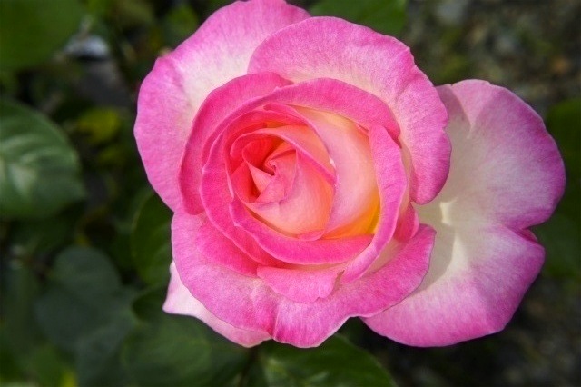 「プリンセス・ドゥ・モナコ」の枝変わりです。親品種と同様に、白色に鮮やかなピンクの覆輪を乗せ、ゆったりと開く巨大輪はふくよかで見事な品種です。葉も照り葉で美しく強健です。バラ栽培初心者の方にもお勧めの強健品種ですが、黒点病に少し弱いようです。日当たりが特に好きな品種です。枝は太めでしっかりとした株になり、複雑な誘引は難しいため、フェンス仕立てやオベリスクに向いています。