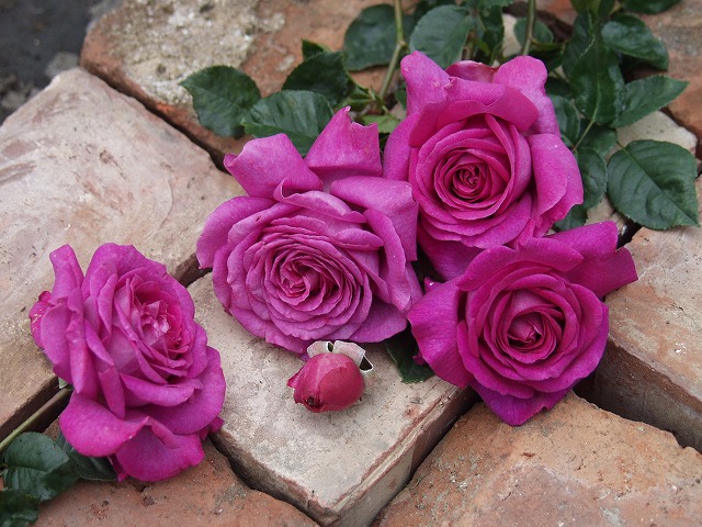 | ローズ紫・大輪咲き(10cm位)・丸弁カップ咲き |