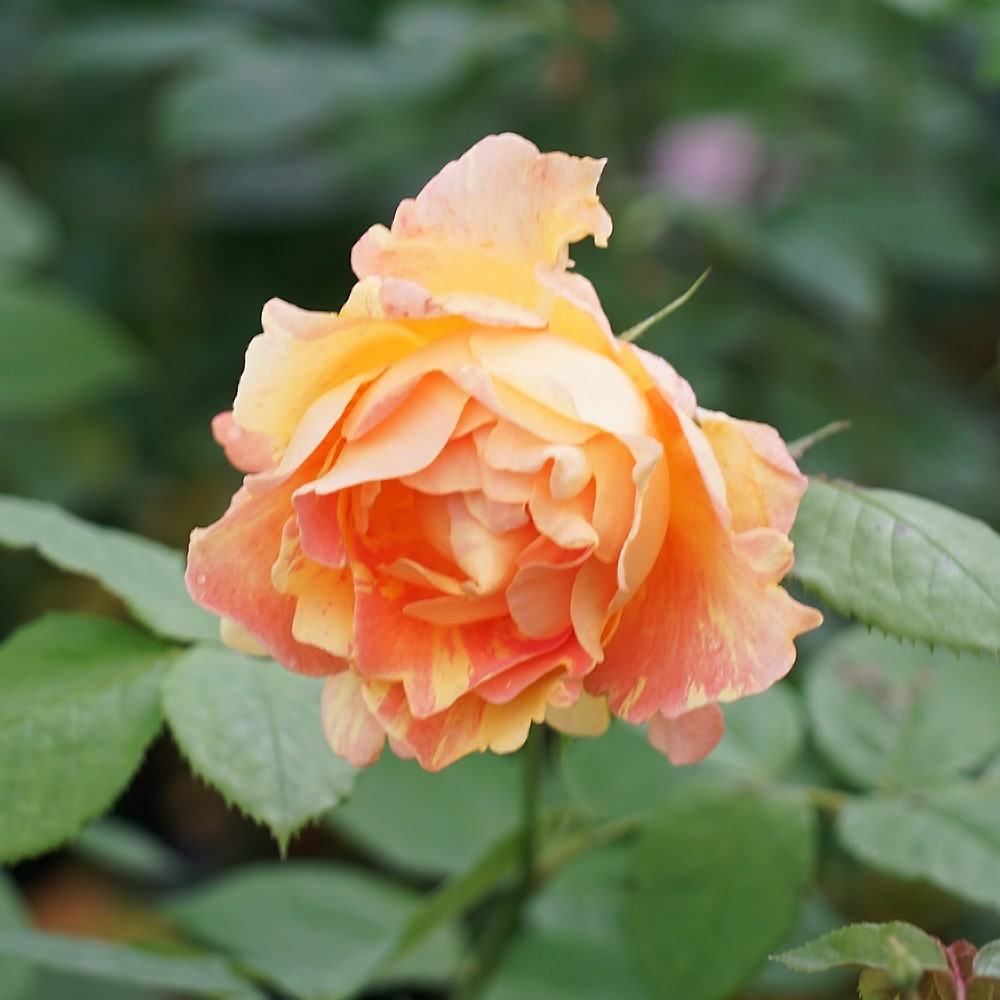 シュラブローズはブッシュローズ(木立バラ)とクライミングローズ(つるバラ)の中間的な樹形で、やや高性になるものや半つる性になるものです。鉢植えや花壇、オベリスクなど使い勝手が良いので、用途やシーンを選ばずに用いやすい品種が多いです。