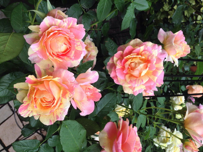 シュラブローズは冬に強い剪定をして木立ちにしてもいいし、トレリスとかオベリスクに誘引しても楽しめます。どっちかといえば、トレリスやオベリスクに誘引して大きくした方が、たくさん花が咲くボリュームがある鉢植えで楽しめます。ベランダで楽しめるつるばらと言う感じです。