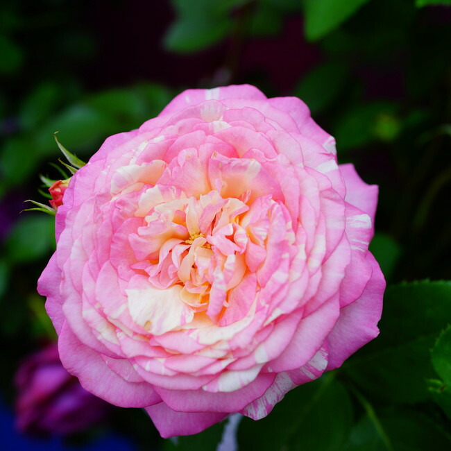 優しいピンク色に白色の絞りが入るマーブルカラーの大輪花は、カップ咲きからロゼット咲きに花姿を変化させ、楽しませてくれます。とても存在感のある花姿でお庭を引き立たせてくれます。花もちも良いです。