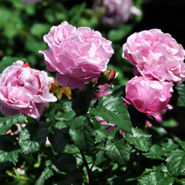 濃い赤色のつぼみが開くと、シックなライラックピンクの中輪カップ咲きになるバラ。ややフリルがかかり、やさしさと華やかさを併せ持ちます。アニス系の強香種。株も暴れずコンパクトな樹形なので鉢植えに向きます。