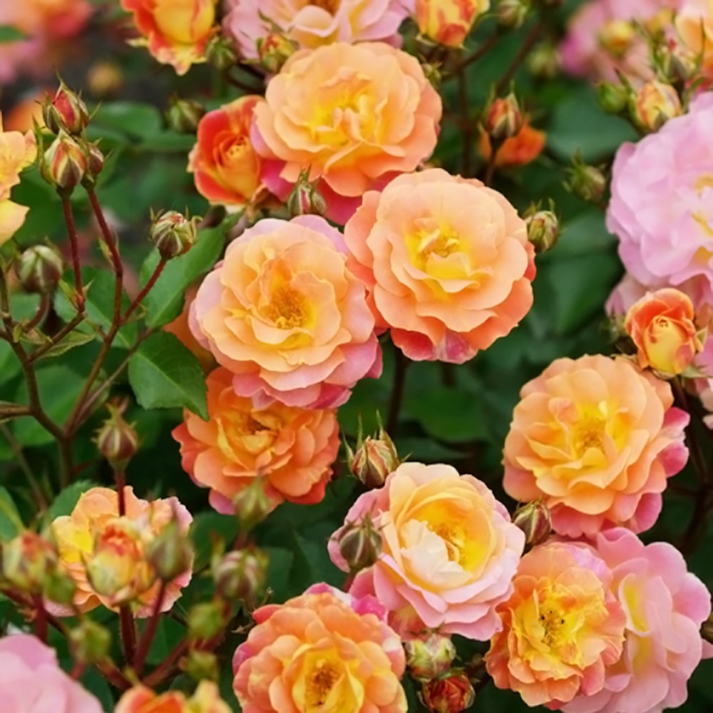 花付き、花もちが良い反面、樹勢はちょっと弱め。耐病性に関しては可もなく不可もなくといったところです。ただ、色とりどりの花色は本当に可愛らしくウキウキした気分にさせてくれる品種です。