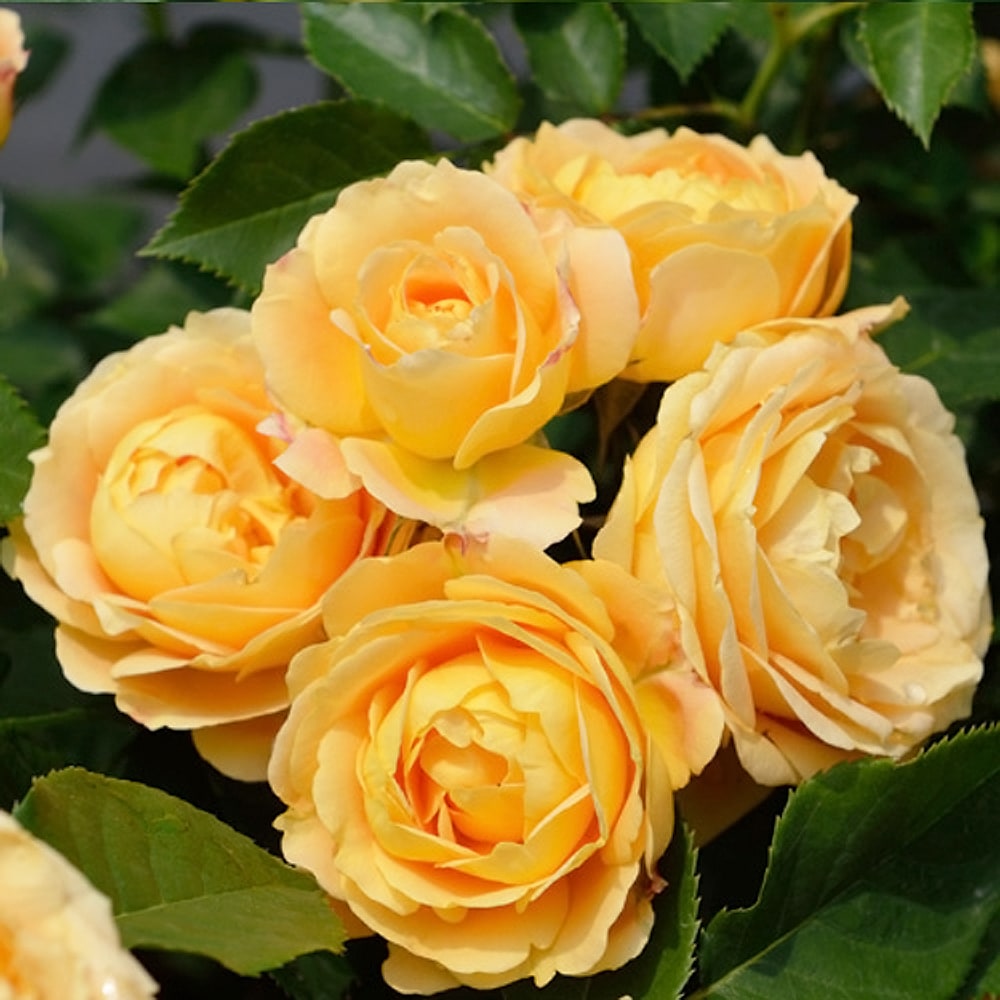 ややオレンジがかった鮮やかな黄色で、綺麗に整った形の中輪カップ咲きのバラ。四季咲き性も強く、春から秋まで繰り返し満開の花を楽しませてくれます。花もちが良く、豊かな香りも魅力で、美しい状態の開花を長く楽しめます。四季咲き性が強く、花のボリュームがあるので、寒い地域では秋遅くまでたくさん花を咲かせすぎると、冬場の枝の枯れこみは多くなる可能性があります。