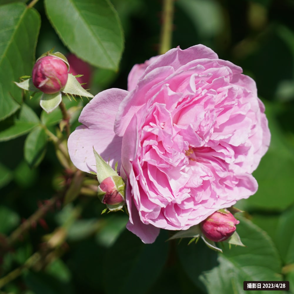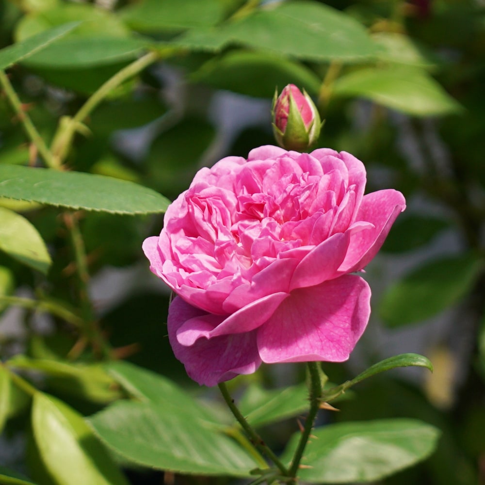 シュラブローズはブッシュローズ(木立バラ)とクライミングローズ(つるバラ)の中間的な樹形で、やや高性になるものや半つる性になるものです。鉢植えや花壇、オベリスクなど使い勝手が良いので、用途やシーンを選ばずに用いやすい品種が多いです。