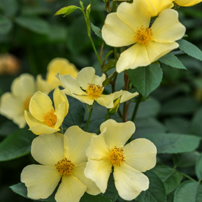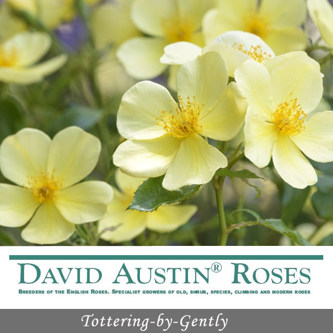 トッタリングバイジェントリーは、一重の花のシンプルな美しさと、花の集まりとして創りだされる見ごたえのある豪華な美しさの両方で楽しむことができます。ゴールドのおしべを中心に開くイエローの花が、大きく広がった小枝に咲き乱れます。時間とともに淡い色合いに変化していき、フレッシュなオレンジピールを感じさせる軽いムスクの香りを放ちます。次から次へと繰り返し花を咲かせます。健康な大きめのシュラブを形成し、丸みのある分岐した枝に育ちます。うどんこ病に強い、黒星病に強い。