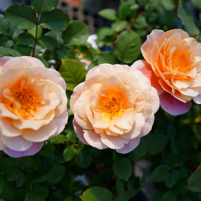フロリバンダローズはアメリカで名づけられた系統で、「花束」の意味です。木立の中輪咲きとも呼ばれます。ハイブリッドティーと花付き、耐寒性が良いポリアンサローズの交配で開発されたモダンなガーデンローズのグループです。
