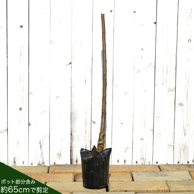 商品は7号ロングスリット鉢に仮植えしており、鉢部分も含め高さ約0.6m前後になります。休眠期は葉がついておりませんが、春になると芽吹き始めます。基本的に花芽や花はついておりません。通常梱包1梱包に3本まで同梱可能です。(小梱包でのお届けはできません。)