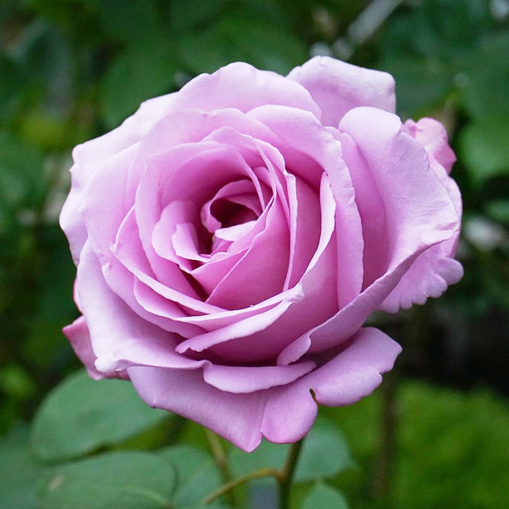青いバラの銘花。蕾は濃い桃色で開くと藤色になります。肥料の量や温度によって青が強く出たりします。