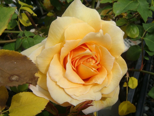 蛍光を発するような、明るいオレンジ色です。咲き進むと花弁の先が波打つ感じ。香りは強いです。数輪の房咲きになるので、フロリバンダに分類されることもあります。放任して育ててもコンパクトに成長します。強めに切り戻してベーサルシュートを伸ばして誘引すると低めのフェンスにも仕立てることが出来ます。半日陰でも花が欲さ咲きます。うどん粉病に注意して育ててください。 |