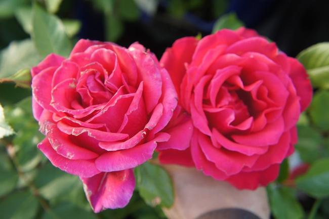 ハイブリッド・ティーローズ系のバラは四季咲き、大輪系。一茎に一輪咲かせて花の見事さを楽しみます。