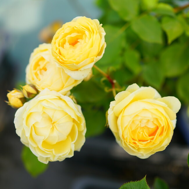 フワフワとした柔らかな雰囲気のカップ咲きの花が可愛らしいです。黄色の花びらは外側が薄くグラデーションになって優しい癒される花色。フルーツとハーブのような爽やかな香りが楽しめます。花もちが良い。樹形はしなやかなシュラブです。一番花はまとまって咲きますが、二番花以降は花首が伸びるのでオベリスクやポール、柱への誘引がよいでしょう。