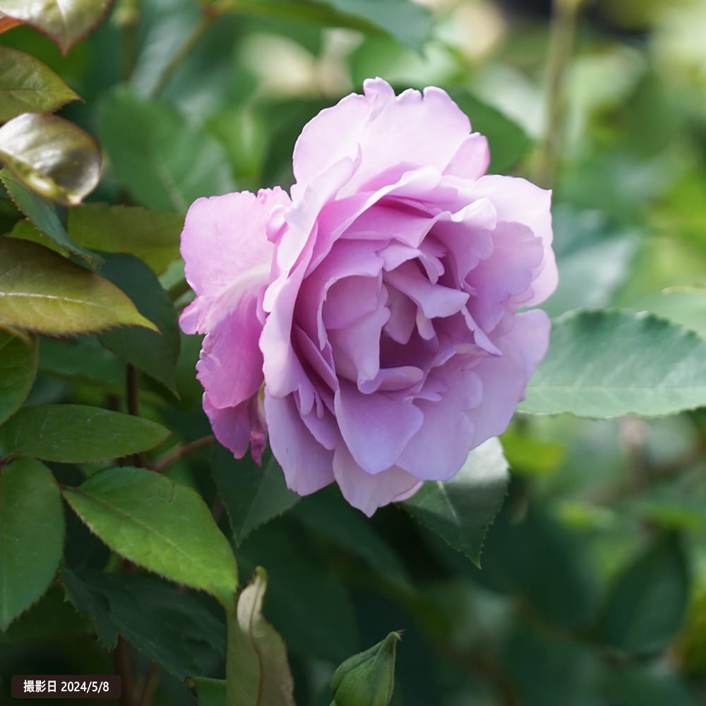 夜来香(イエライシャン)。何とも魅惑的な名前ですよね。藤色の上品な花色で、深みのあるブルーローズの香りに爽やかな柑橘系のベルガモットとフルーティーな甘さが楽しめるステキなバラです。トゲが少なく中輪咲きで、丸弁の親しみやすい花姿です。花もちも良い。